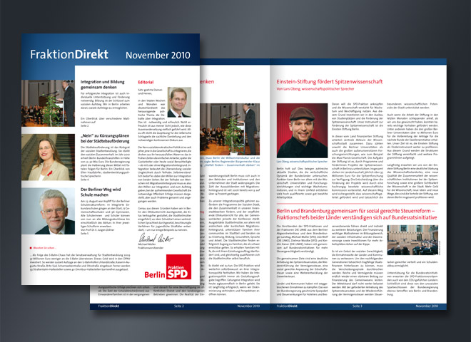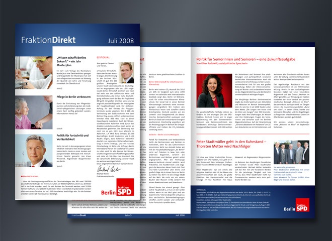Seit Januar 2005 gestalten wir den Print-Newsletter „Fraktion Direkt“.