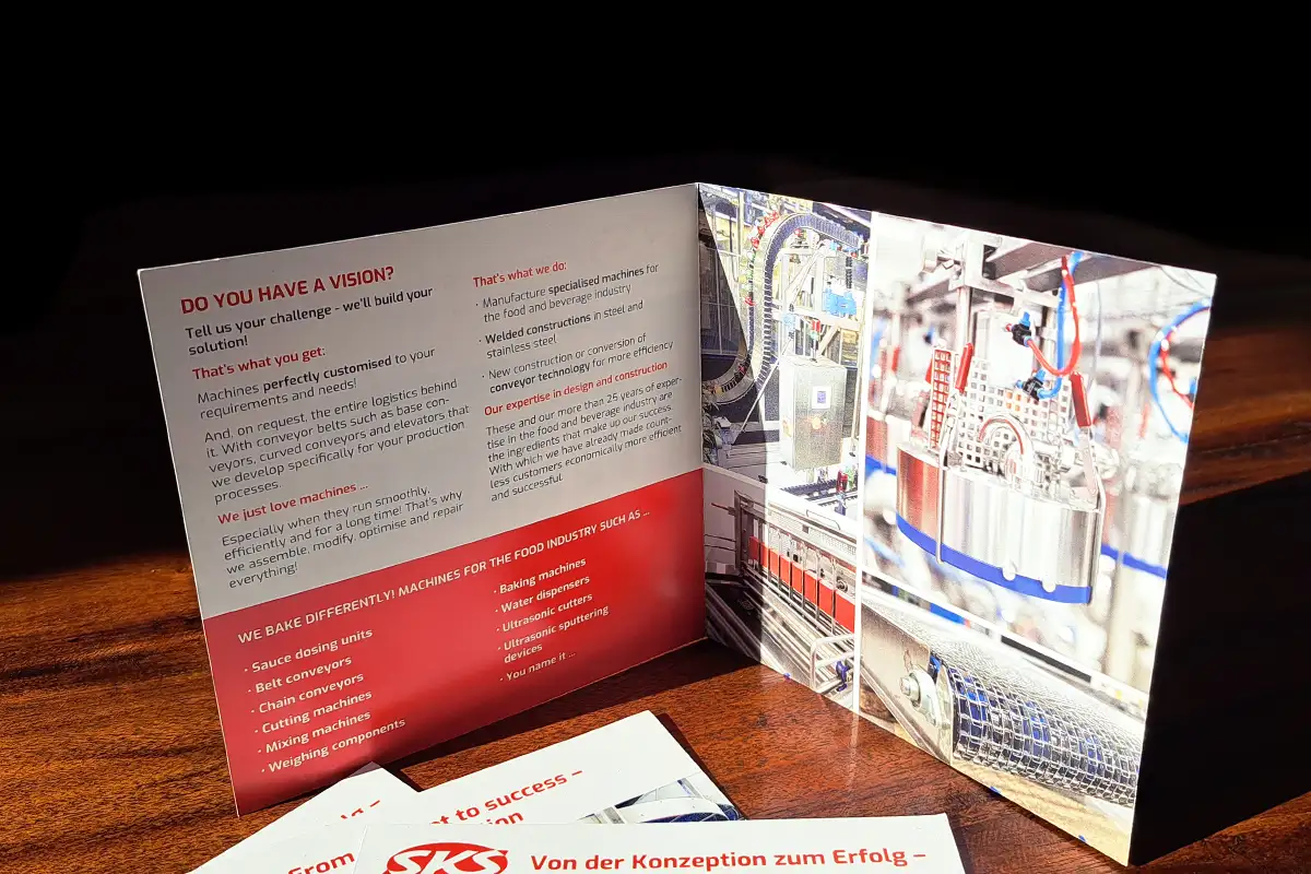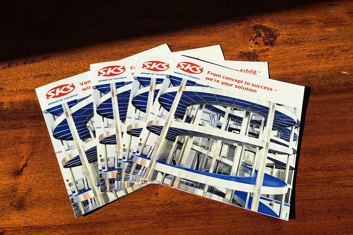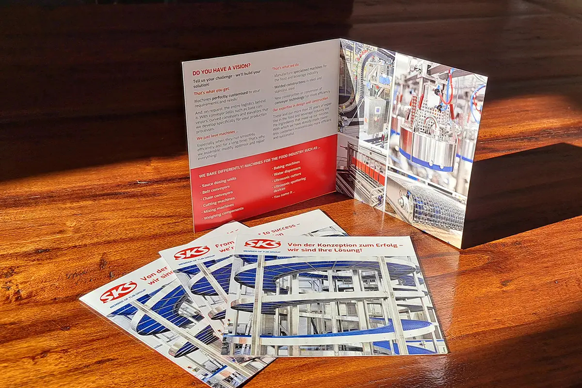 Für unseren langjährigen Kunden SKS Sondermaschinen- und Fördertechnikvertriebs-GmbH haben wir anlässlich der IBA-Messe einen kompakten, vierseitigen Flyer im quadratischen Format gestaltet. Ziel war es, das breite Leistungsspektrum des Unternehmens auf den Punkt zu bringen – verständlich, technisch präzise und in einem Ton, der sowohl das Fachpublikum als auch Entscheider:innen anspricht.