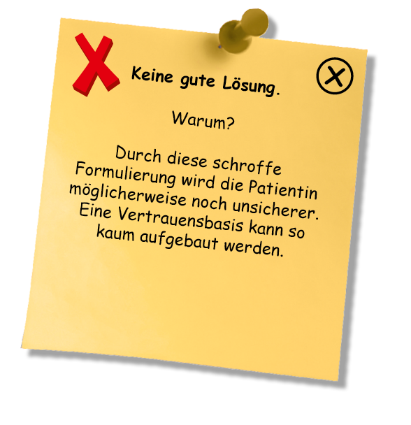 Oje ... Es gibt noch zu viele Situationen, in denen Sie sich offensichtlich nicht in die Situation Ihrer Patienten hineinversetzen können und dadurch möglicherweise unsensibel und verletzend auftreten. An Ihrer Art der Kommunikation sollten Sie dringend arbeiten! Einige Tipps haben wir in dieser App zusammengestellt.
