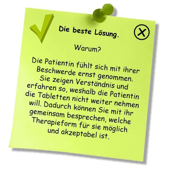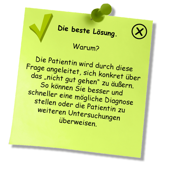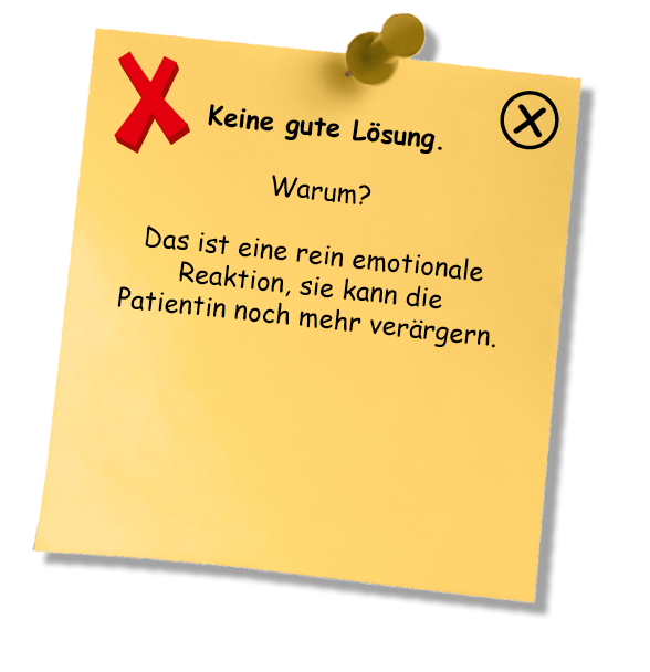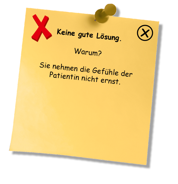 Sehr gut, Sie reagieren in der Regel sehr sensibel auf Ihre Patienten, die sich bei Ihnen sicher sehr gut aufgehoben fühlen!
